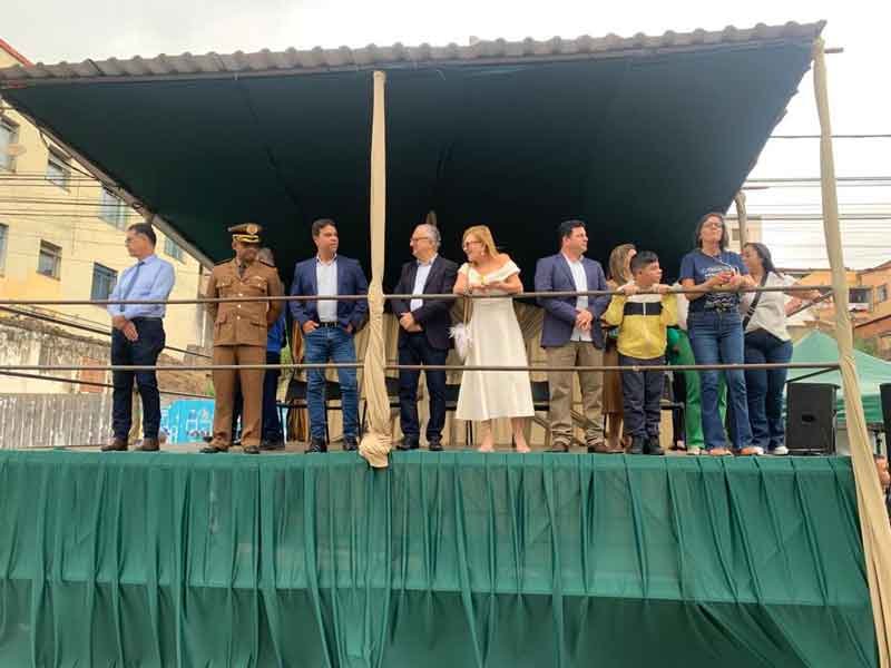 Inicialmente, na praça Sete de Setembro, houve a solenidade de hasteamento de bandeiras, abrilhantado pela Corporação Musical “O Guarani”.