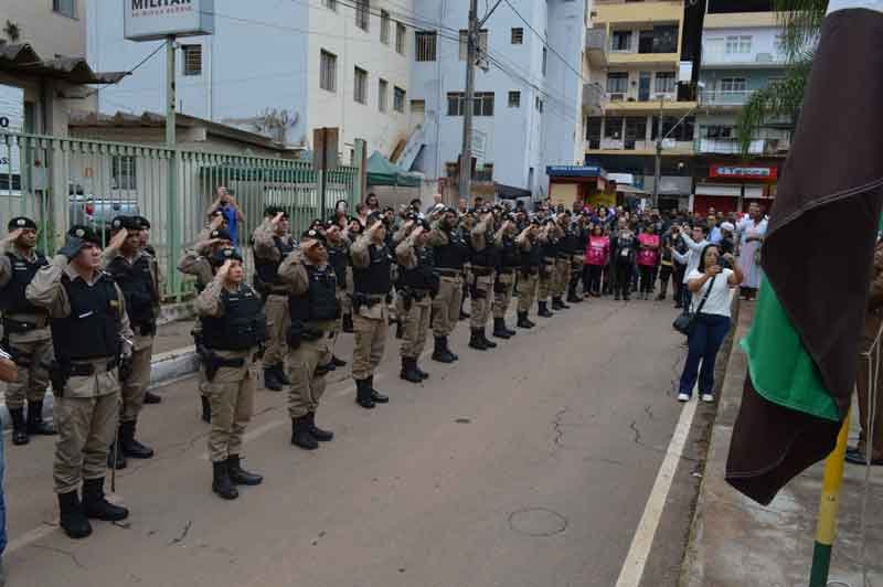 O cortejo percorreu a avenida e defronte o palanque das autoridades, prestou a continência, numa demonstração de civismo e patriotismo, enaltecendo os valores Institucionais.