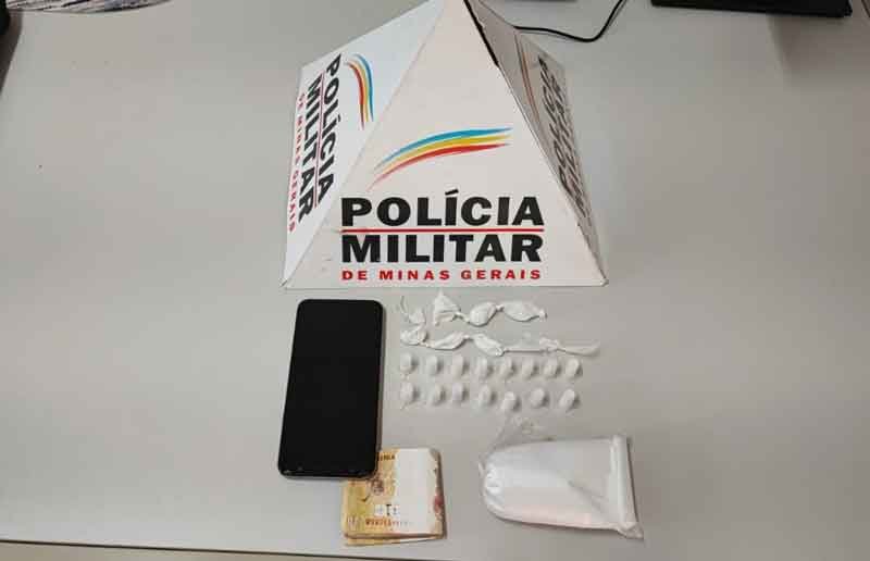 Durante a abordagem, os policiais militares apreenderam oito papelotes contendo uma substância em pó branco, semelhante a cocaína, 15 pinos de cocaína, além de embalagens plásticas comumente utilizadas para acondicionar drogas. Também foi apreendido um celular da marca Samsung J4 e a quantia de R$104,00 em moeda corrente.
