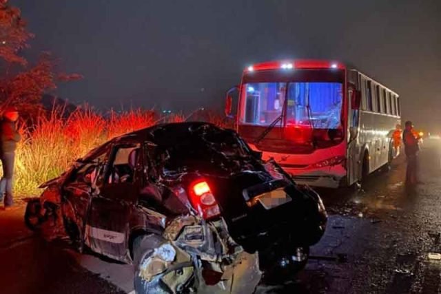 O motorista do caminhão, com placa de Itabela/Bahia, teria executado a ultrapassagem após uma curva, colidindo com o carro que se aproximava no sentido oposto.