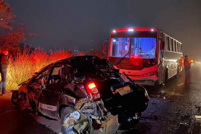 O impacto resultou no deslocamento do carro para o acostamento da pista contrária, enquanto o ônibus teve a parte frontal lateral afetada. Tanto o condutor do caminhão quanto o motorista do ônibus não sofreram ferimentos, e os passageiros do ônibus também saíram ilesos.