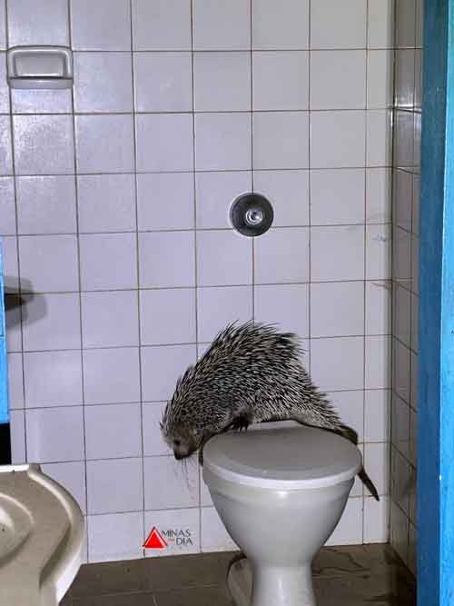 No local, tratava-se de um ouriço caixeiro adulto, que havia adentrado a uma residência, e foi encontrado dentro de um banheiro social localizado no quintal.