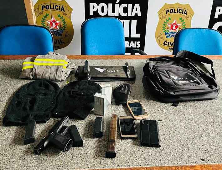 Segundo o Delegado Renato Zanco “aportou nesta delegacia notícia de crime em que vigilantes da Vale S/A, ao surpreenderem três homens tentando subtrair bens pertencentes à Vale no dia 17/08/2023, foram recebidos a tiros de pistola 9mm, pelo que os indivíduos conseguiram fugir do local. Diante disso, policiais identificaram o conduzido como tendo estado no dia e local dos fatos, sendo assim representado pela busca e apreensão na casa do suspeito”.