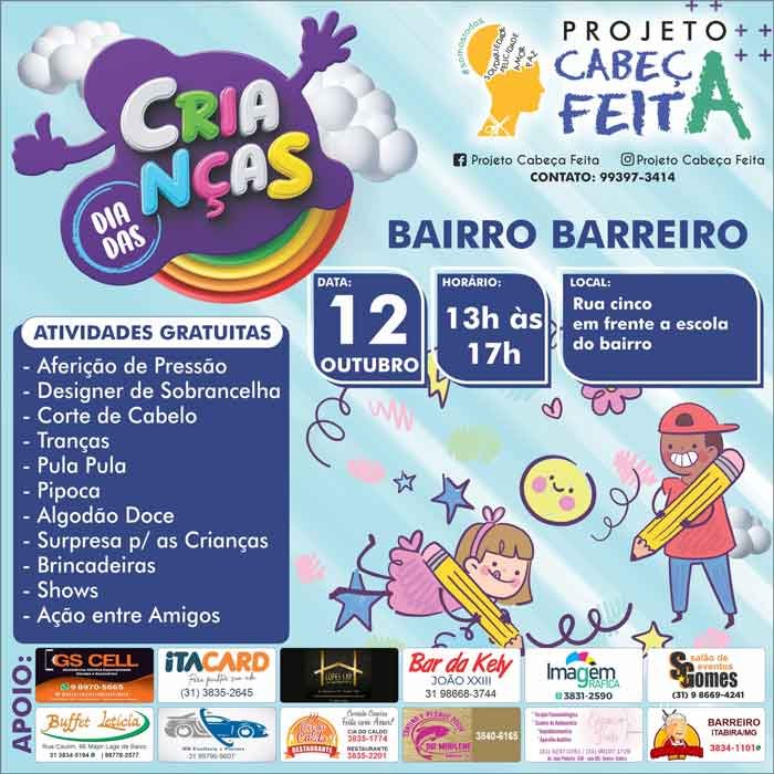 No Dia das Crianças, o bairro Barreiro em Itabira se prepara para uma celebração especial, graças ao empenho do Vereador Sidney do Salão e seu Projeto Cabeça Feita. Uma série de atividades gratuitas e emocionantes estão planejadas para trazer sorrisos aos rostos das crianças e suas famílias.