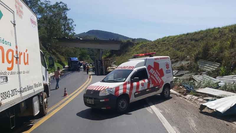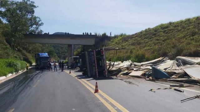 Acidente na BR-381: Carreta carregada de madeira tomba próximo à Ponte Torta em João Monlevade pic.twitter.com/gdyt3jGoNG