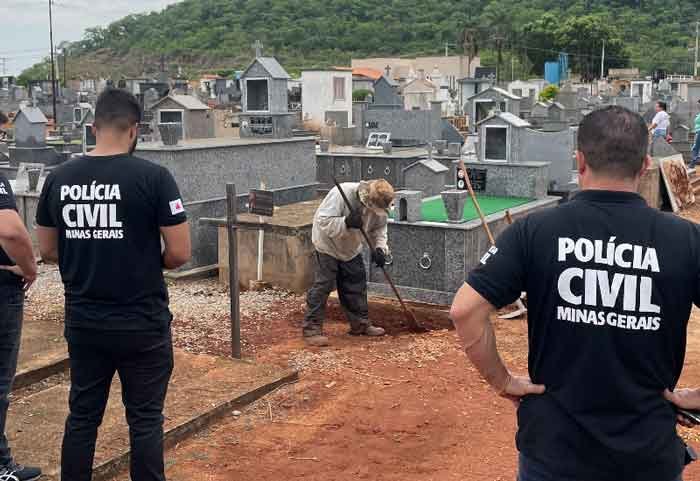 Também na operação Finados, médicos-legistas e peritos da PCMG realizaram procedimento de exumação no cemitério de Vazante, constatando a falta de diversos ossos de um cadáver.