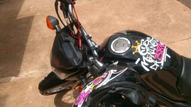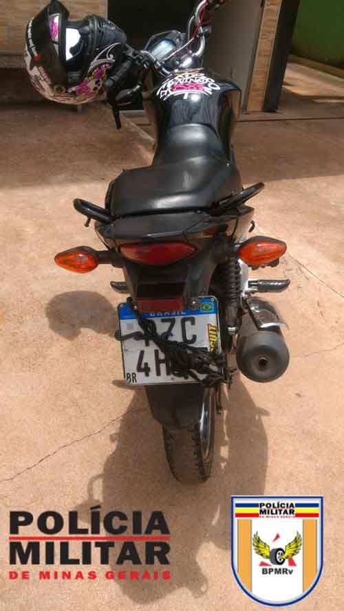 Após a abordagem, constatou-se que se tratava da motocicleta HONDA/CG 160 START, sem restrições no sistema. Ao ser questionado sobre o motivo de ter evadido da guarnição, o condutor, identificado como J. M. A. S., declarou que estava se deslocando para a cidade de Belo Horizonte com sua namorada, uma passageira de 17 anos (menor de idade), e que adulterou a placa para evitar multas de radares. Ele utilizou um acessório de borracha (aranha) para adulterar a placa de identificação.