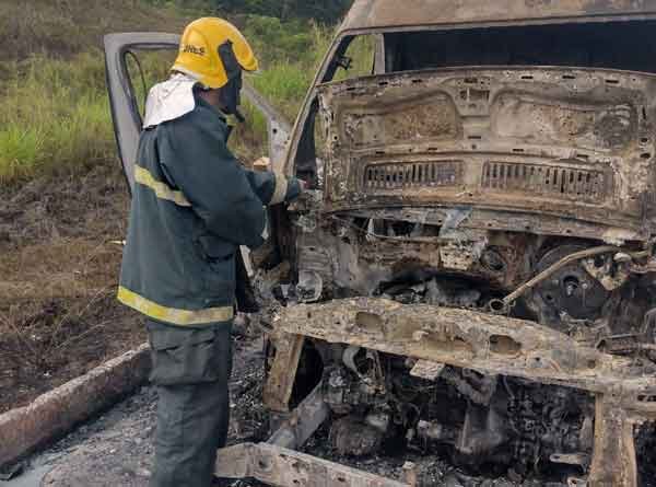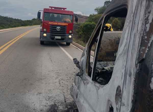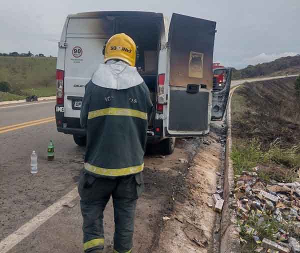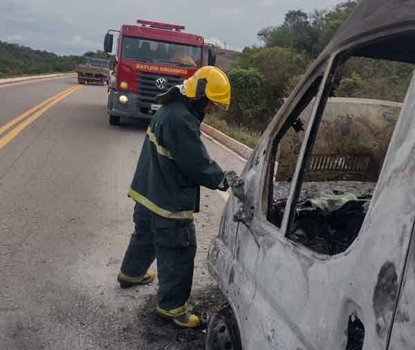 Devido à extensão das chamas e ao fato de terem se alastrado para o pasto próximo à rodovia, os bombeiros também realizaram o combate às margens da estrada. Segundo o condutor da van, o incêndio teve início nos pneus dianteiros e, mesmo com o uso de um extintor, ele não conseguiu apagá-lo.