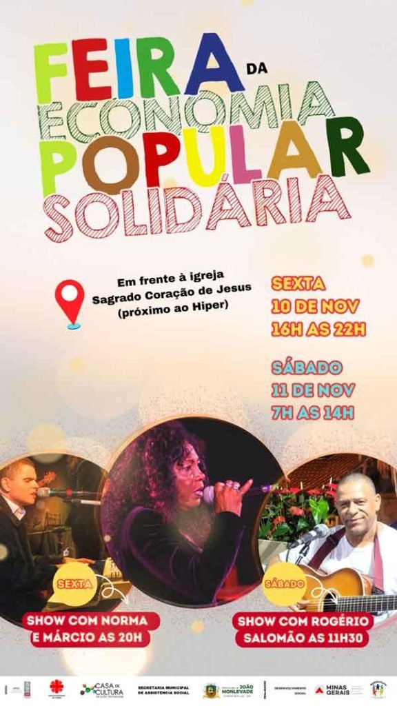 A Feira da Economia Popular Solidária é uma realização da Solidariarte e da Cáritas Diocesana, com o apoio da Prefeitura de João Monlevade, através da Secretaria Municipal de Assistência Municipal, Fundação Casa de Cultura e Ufop.