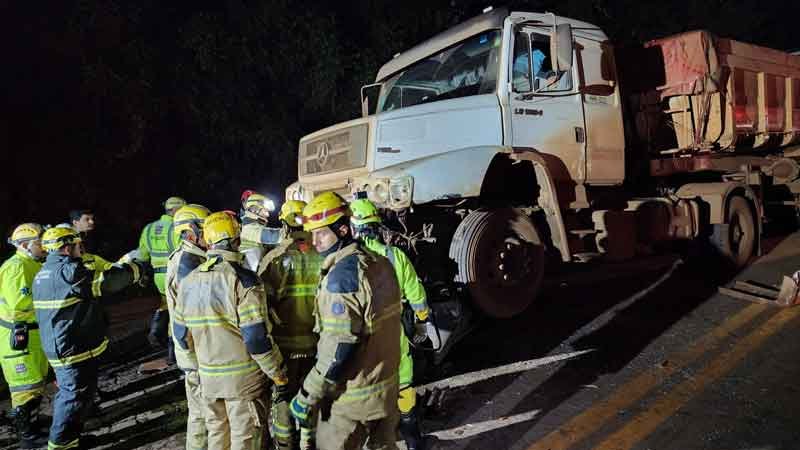A colisão ocorreu entre um automóvel gol, uma carreta Mercedes e duas carretas Scania. O veículo de passeio, com três ocupantes do sexo masculino, foi o mais afetado, ficando completamente destruído e preso embaixo da cabine da carreta Mercedes. Infelizmente, duas vítimas não resistiram ao impacto e faleceram no local. A terceira vítima foi resgatada com vida e transportada em estado grave pela equipe médica da VIA 040.