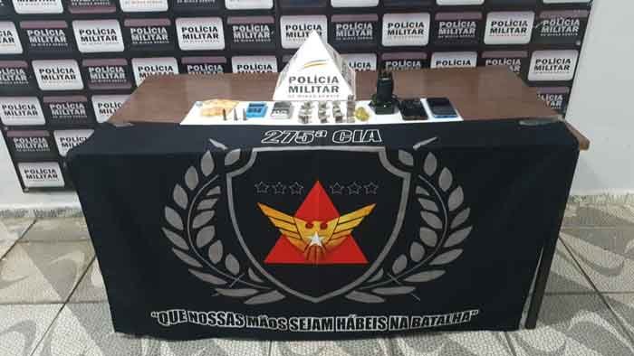 Com a prisão do homem de 33 anos e a recuperação da bolsa de mão, as autoridades constataram a presença de materiais ilícitos, resultando na apreensão de 21 tabletes de maconha, 2 pinos de cocaína, uma munição calibre .38, um rádio comunicador, 2 telefones, uma máquina de cartão, e a quantia de R$ 190,00 em espécie.