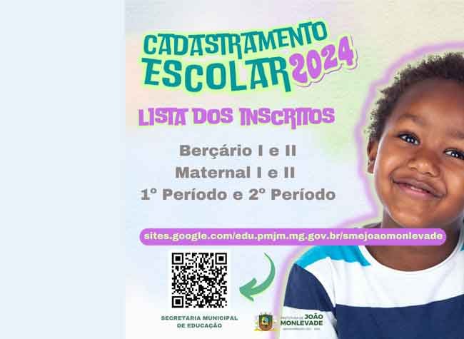 A Secretaria Municipal de Educação de João Monlevade tornou pública, nesta sexta-feira (17), a lista das crianças inscritas para a rede municipal de educação infantil. Para acessar a relação completa, os interessados podem consultar o site sites.google.com/edu.pmjm.mg.gov.br/smejoaomonlevade. As vagas abrangem o Berçário I e II, Maternal I e II, 1º Período e 2º Período.