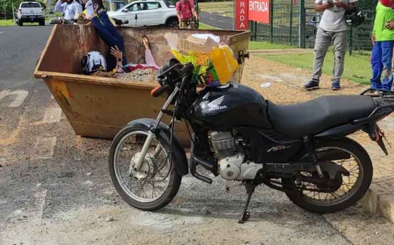 Segundo informações do boletim de ocorrência, a Polícia Militar (PM) foi acionada por telefone e encontrou a motociclista dentro da caçamba de entulho. A mulher, que possui habilitação para conduzir motocicletas, relatou à PM que estava trafegando pela avenida quando se distraiu ao mexer em uma sacola que transportava na parte da frente da moto, resultando em uma colisão com a caçamba.