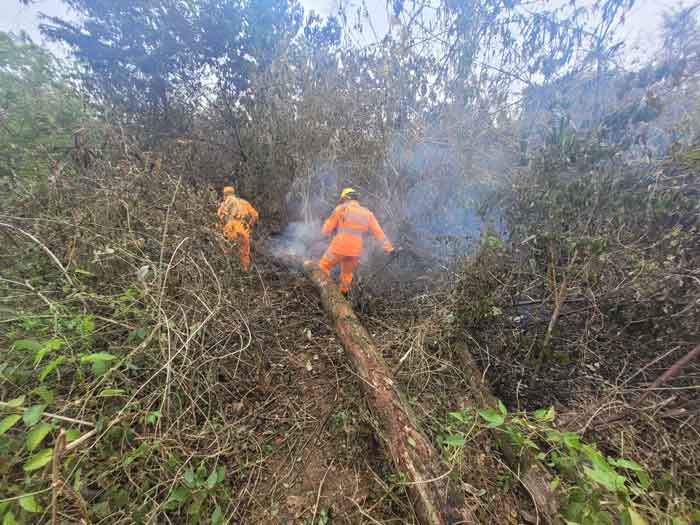 Devido à quantidade de focos de incêndio e à dificuldade de deslocamento no terreno, foi necessário reforçar o efetivo na manhã de sábado (25). A equipe que estava combatendo o incêndio foi complementada por militares dos batalhões especializados do BOA e BEMAD, totalizando 25 bombeiros militares.