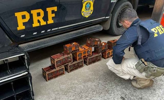 A Polícia Rodoviária Federal resgatou 14 pássaros silvestres dentro de um automóvel, na manhã de sábado (25/11), durante uma fiscalização no Km 311 da BR 251, em Salinas (MG).