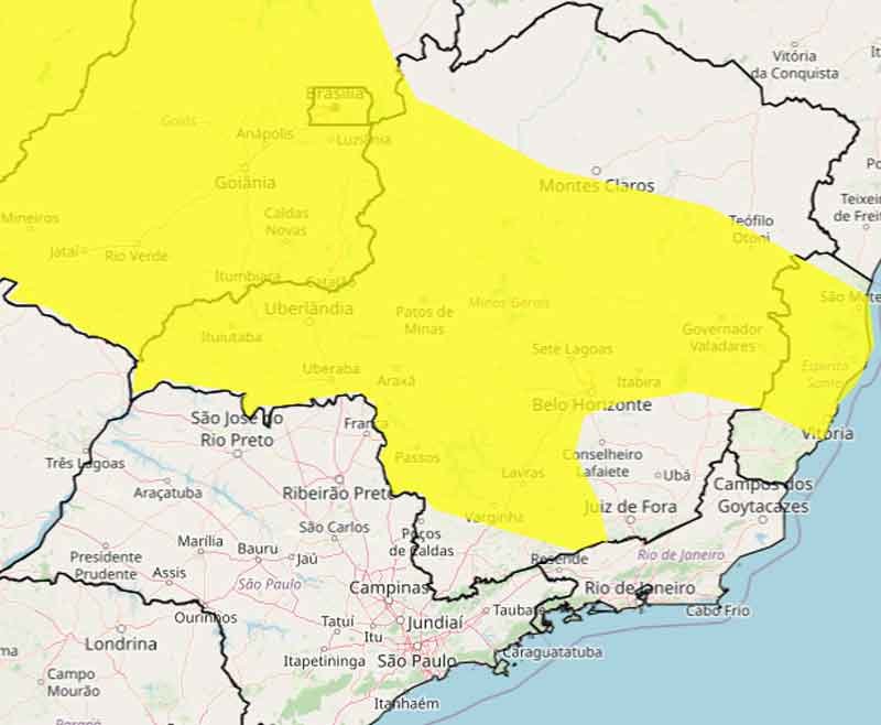 De acordo com o INMET, são esperadas chuvas com intensidade entre 20 e 30 mm/h, podendo chegar a até 50 mm/dia. Além disso, são previstos ventos intensos com velocidades entre 40 e 60 km/h. Essas condições climáticas podem acarretar riscos potenciais, como corte de energia elétrica, queda de galhos de árvores, alagamentos e descargas elétricas.