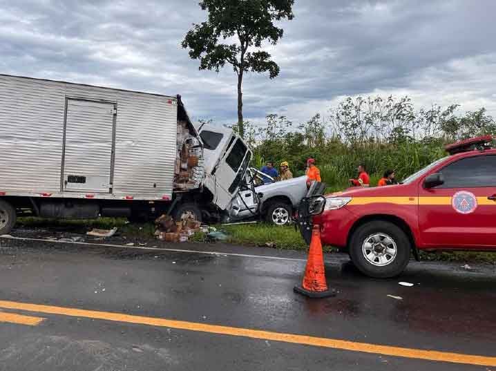 O acidente mobilizou duas viaturas e contou com o apoio do Arcanjo no atendimento. Segundo relatos do passageiro da caminhonete, o caminhão estava realizando uma ultrapassagem quando colidiu frontalmente com a caminhonete GM S10, que seguia no sentido oposto. Infelizmente, o condutor da caminhonete não resistiu aos ferimentos e teve o óbito constatado pelo médico da concessionária.