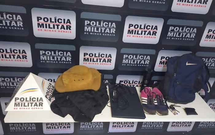 Com os autores foram localizados além do notebook, 01 jaqueta, 01 mochila, par de tênis, garrafa térmica, chave de automóvel, 01 lupa agronômica e R$100,00.