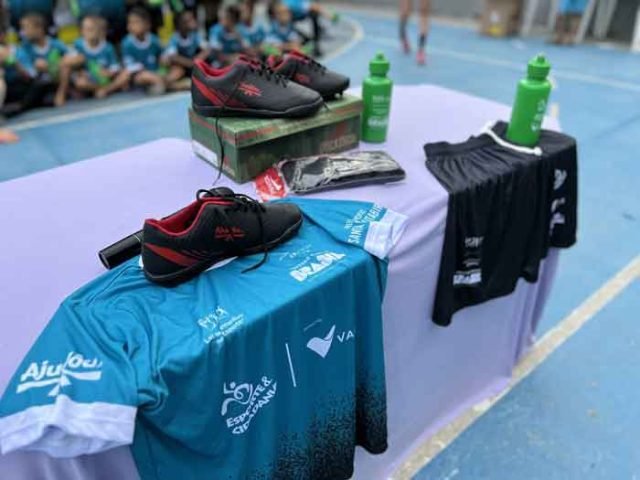 A comunidade do Chaves, em Santa Maria de Itabira, recebe o projeto Esporte e Cidadania que já atende mais de 100 crianças e adolescentes no município. O Vice-prefeito e Secretário de Esportes, André Torres, juntamente com vereadores e equipe da secretaria, realizou a entrega dos kits esportivos na comunidade na terça-feira, 12 de novembro. O kit conta com camisa, short, meião, tênis e squeeze. Na segunda-feira, a Prefeitura realizou a entrega dos kits às crianças e adolescentes da comunidade do Barro Preto onde o projeto já comemora um ano.