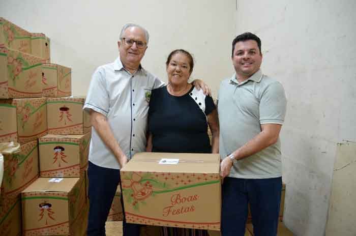 A cesta ainda contém uma lata de panettone com gotas de chocolate, uma lata de biscoitos amanteigados de 300 gramas, uma caixa de um litro de suco integral, uma caixa de bombom de 250 gramas, um pote de doce de leite de 400 gramas, um pacote de Geladinho com 40 unidades, um pacote de amendoim empanado de 500 gramas, duas garrafas de 2 litros de refrigerantes, sendo um de cola e um de guaraná.