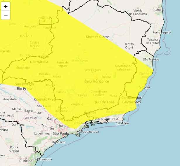 O Instituto Nacional de Meteorologia (INMET) emitiu um aviso de chuvas intensas, com grau de severidade classificado como Perigo Potencial, a partir das 10h20min do dia 26/12/2023, com previsão de término às 10h00min do dia 27/12/2023. Os riscos potenciais incluem chuvas entre 20 e 30 mm/h ou até 50 mm/dia, ventos intensos variando entre 40-60 km/h, com baixo risco de corte de energia elétrica, queda de galhos de árvores, alagamentos e descargas elétricas.