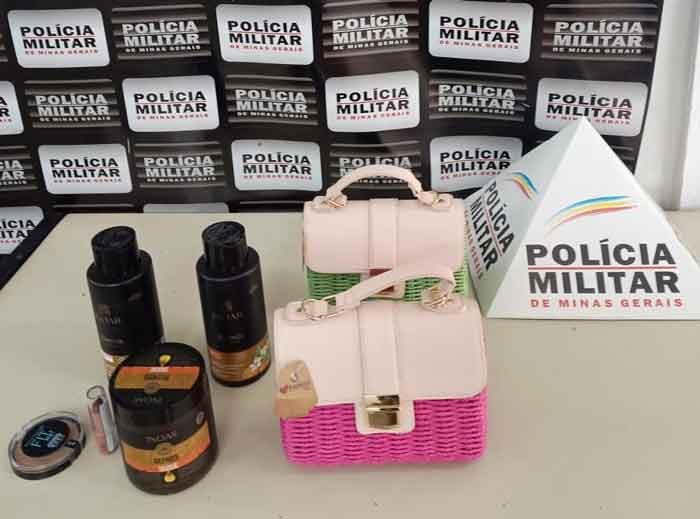 Ao chegarem ao local, os policiais foram informados sobre o furto de cosméticos em uma drogaria, bem como o roubo de duas bolsas em outro estabelecimento comercial. A suspeita, uma mulher de 51 anos, confessou sua participação nos delitos.