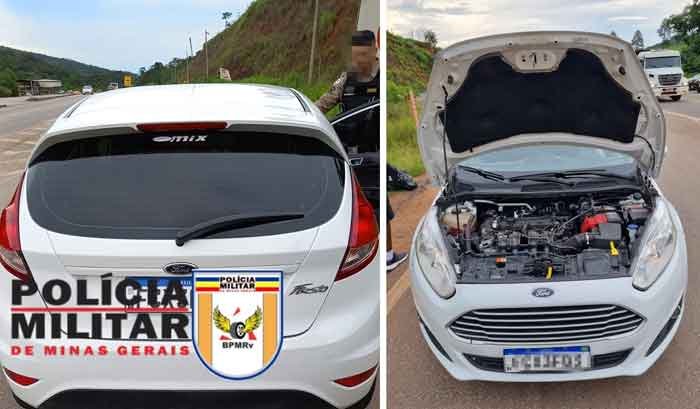 Durante a inspeção veicular, verificou-se que o veículo apresentava características de identificação adulteradas, levando a guarnição a constatar que o automóvel era produto de roubo em 27/06/2023, no município de São Paulo, conforme Boletim de Ocorrência registrado no sistema de consulta Senatran (Secretaria Nacional de Trânsito).