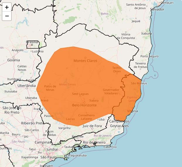 Espera-se chuva entre 30 e 60 mm/h ou 50 e 100 mm/dia, acompanhada de ventos intensos (60-100 km/h). Há risco de corte de energia elétrica, queda de galhos de árvores, alagamentos e descargas elétricas.
