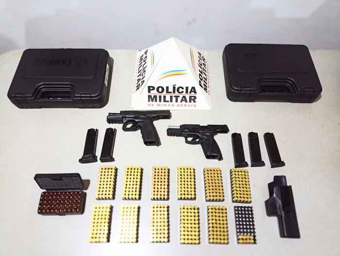 Ao percorrer a rodovia, a equipe do Cmt da 17ª Cia PM Ind localizou o veículo no posto Anacleto, BR 262, em São Domingos do Prata, efetuando ali a prisão do autor, encontrando a seguir, com o apoio do Comando Tático, no interior do caminhão, 01 pistola Taurus 9 mm, modelo TS9, com 01 carregador, municiado com 15 cartuchos intactos.