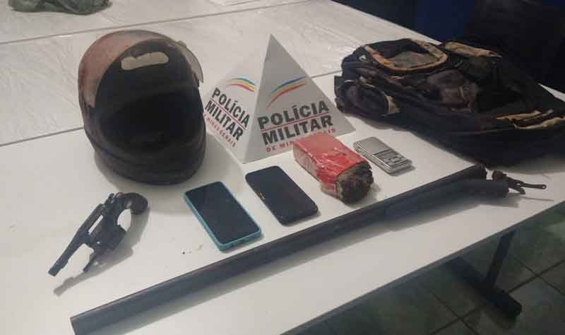 Os militares localizaram na referida residência uma espingarda enterrada num amontoado de areia. Durante as diligências o suspeito chegou ao local e alegou desconhecer a procedência da motocicleta, da arma localizada e o suposto autor do crime, contudo, militares que acompanhavam o referido cidadão à distância puderam observar o momento em que ele dispensou uma mochila num terreno próxima à residência.