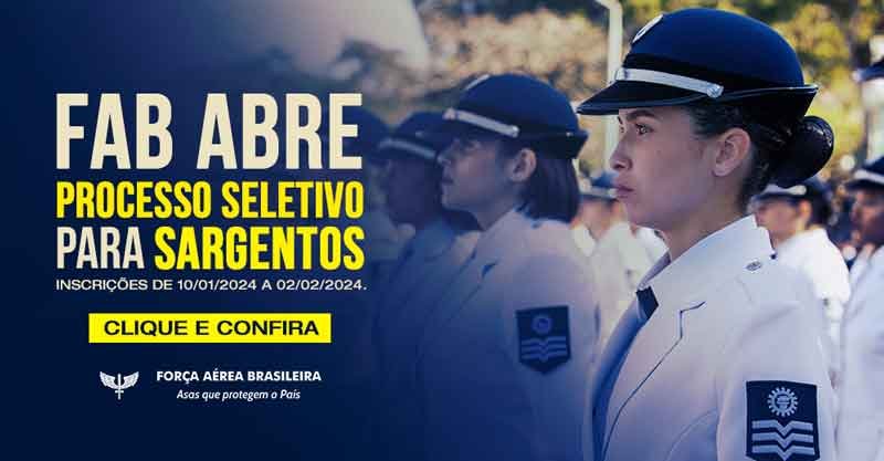A Força Aérea Brasileira (FAB) abrirá inscrições para o Exame de Admissão ao Estágio de Adaptação à Graduação de Sargentos da Aeronáutica (EAGS) do ano de 2025. O concurso oferece 100 vagas para candidatos com nível médio completo, proporcionando a oportunidade de ingressar em uma carreira militar na FAB.