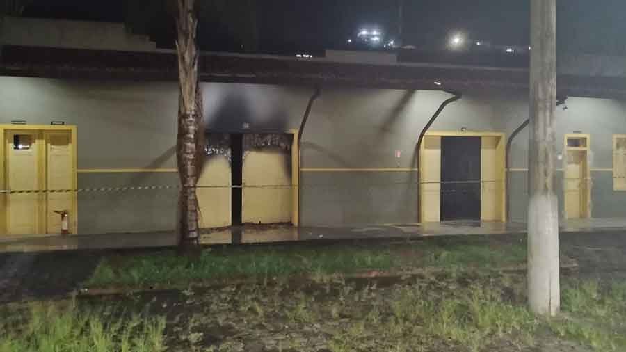 Após o controle das chamas, as equipes constataram janelas e portas arrombadas, além da presença de uma caixa de fósforos vazia, um galão de álcool gel e uma lata de tinta em spray no local.