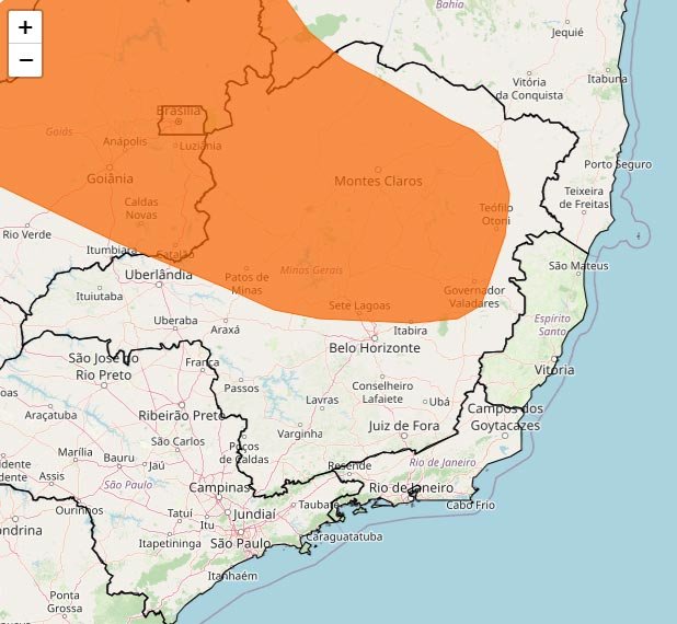 O Instituto Nacional de Meteorologia (INMET) emitiu um aviso de chuvas intensas com grau de severidade considerado como perigo. Este aviso estará em vigor a partir das 09h40min do dia 07 de fevereiro de 2024, com término previsto para as 10h00min do dia 08 de fevereiro de 2024.