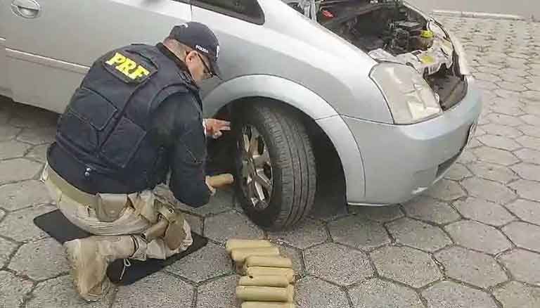 Os policiais realizavam ação de combate ao crime no km 758, quando abordaram o veículo GM/Meriva, que tinha uma mulher na condução, um homem de passageiro e uma menor de idade no banco traseiro. No decorrer da fiscalização, os PRFs localizaram, dentro da caixa de ar do carro, 76 tabletes de 500g e 8 tabletes de 250g da droga, totalizando o peso aproximado de 40 kg de Haxixe.