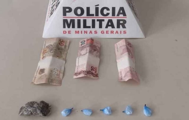 Durante a revista, foram encontrados em posse do adolescente os seguintes materiais ilícitos sendo 01 porção de maconha; 05 papelotes de cocaína e R$ 70,00 em dinheiro.