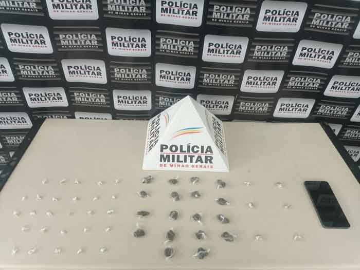Durante um patrulhamento de rotina, os Policiais Militares abordaram o indivíduo e, após uma busca pessoal, encontraram em sua posse os seguintes materiais ilícitos: 33 pedras de crack, 18 buchas de maconha e um aparelho celular Redmi 13.
