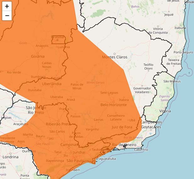 Os riscos potenciais associados a este alerta incluem chuvas com intensidade entre 30 e 60 mm/h ou 50 e 100 mm/dia, além de ventos intensos variando entre 60 e 100 km/h. Tais condições meteorológicas aumentam consideravelmente o risco de ocorrências como corte de energia elétrica, queda de galhos de árvores, alagamentos e descargas elétricas.