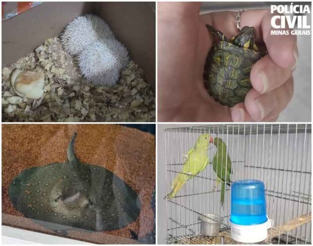 Na loja e na residência dos suspeitos, a equipe policial localizou uma tartaruga, dois hedgehogs (ouriço pigmeu africano), uma arraia grande e duas aves da espécie Ring Neck. Os animais foram apreendidos, e a PCMG lavrou um Termo Circunstanciado de Ocorrência (TCO).