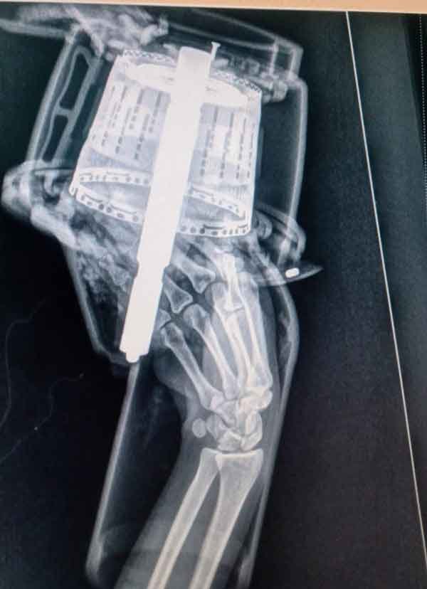 Felizmente, no primeiro exame de raio X não constava fratura. Após a retirada do objeto, seria realizado um segundo raio X para verificar com precisão a existência ou não de lesões. A vítima ficou aos cuidados da equipe médica da unidade hospitalar.