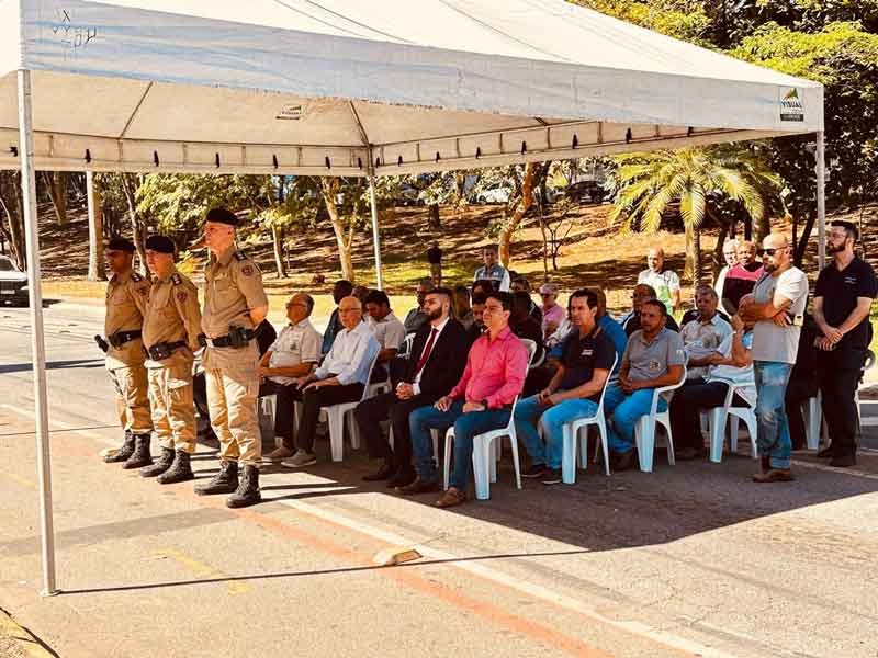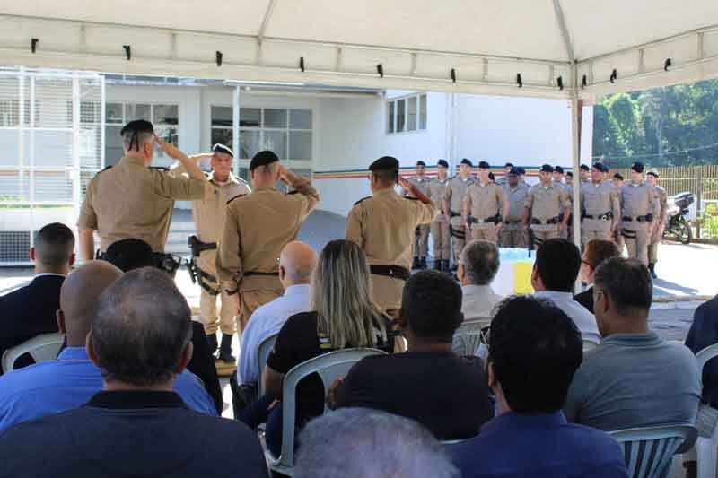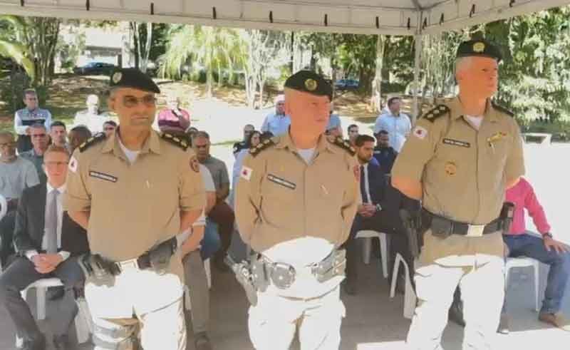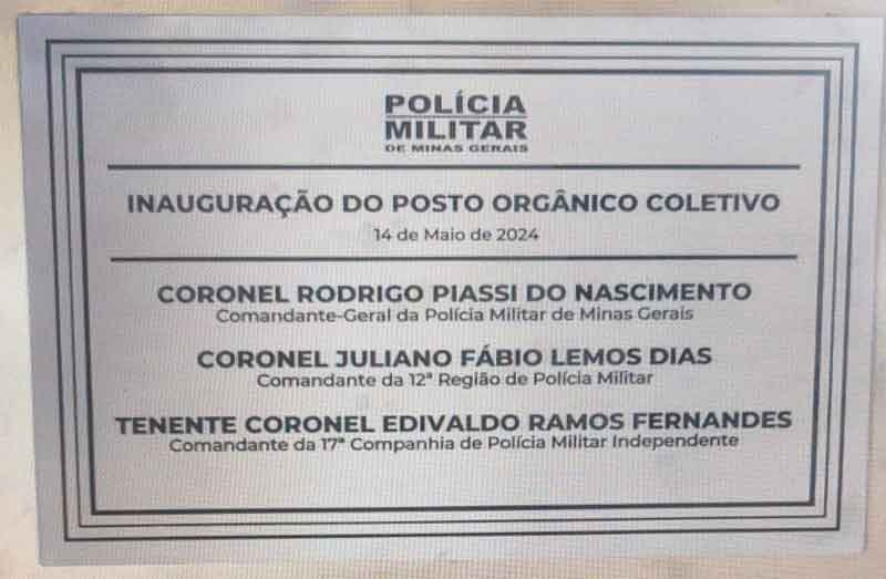 O descerramento da placa de inauguração foi executado pelo Cel Juliano Fábio Lemos Dias, Cmt da 12 RPM, acompanhado do Ten Cel Fernandes, Comandante da 17 Cia PM ind, do Dr. Laércio José Ribeiro, Prefeito de João Monlevade e Vereador Fernando Linhares, Presidente da Câmara Municipal.