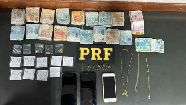 Nesta quarta-feira (15), no município de Pouso Alegre (MG), a Polícia Rodoviária Federal (PRF) apreendeu, com auxílio dos cães farejadores, maconha, diversas joias de ouro e vasta quantidade de dinheiro em espécie.