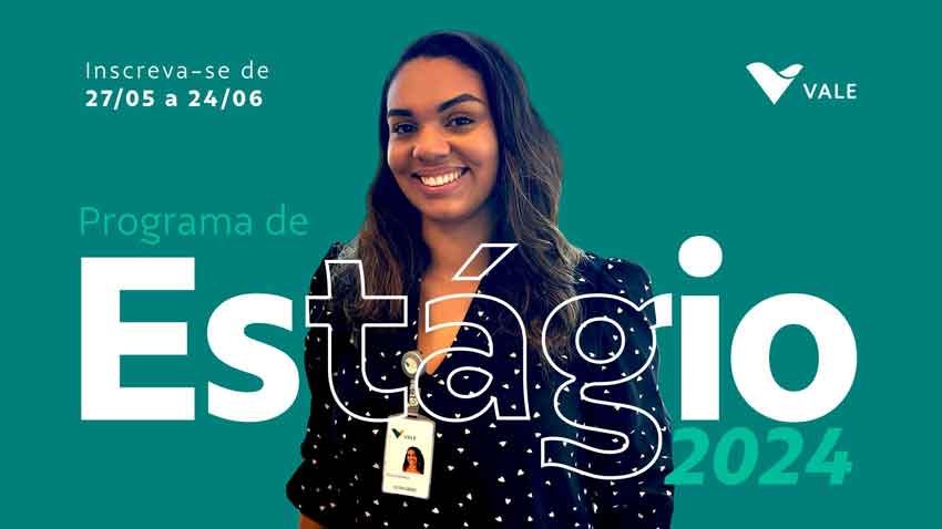 O Programa de Estágio 2024 da Vale está com inscrições abertas a partir desta segunda-feira (27/05). São mais de 850 vagas em diversas cidades de cinco estados: Espírito Santo, Maranhão, Minas Gerais, Pará e Rio de Janeiro. O programa busca os melhores talentos que representem a diversidade do Brasil e que estejam dispostos a inovar de forma colaborativa e compartilhada, contribuindo para o desenvolvimento dos negócios e gerando um impacto positivo na sociedade.