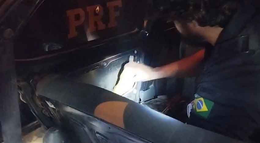 A ação ocorreu no km 771, na BR-116. Os policiais abordaram um Fiat/Pálio, com placas de São João de Meriti (RJ), que era ocupado por dois homens, um de 30 e o outro de 49 anos.