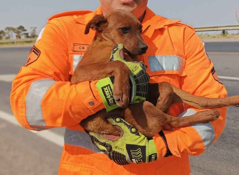 De acordo com o Corpo de Bombeiros, ao chegar ao local, a equipe encontrou dois cachorros sem raça definida (SRD), ambos fêmeas, no acostamento da rodovia.