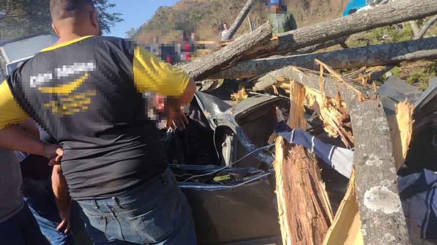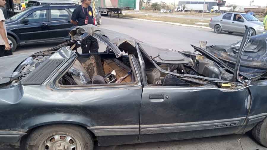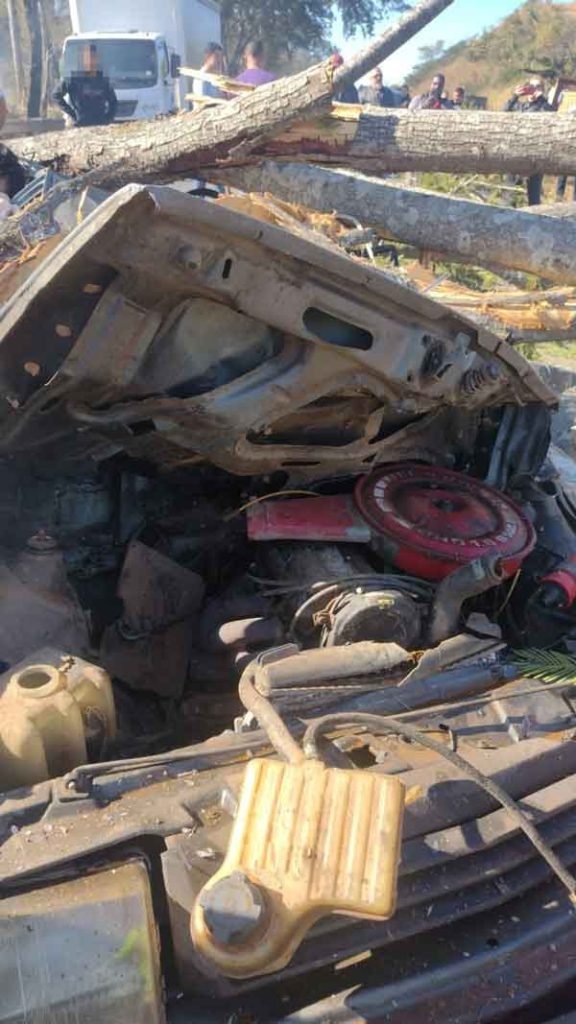 Uma árvore caiu sobre um carro na manhã desta quarta-feira (17/07) na BR-040, no km 500, próximo ao município de Esmeraldas. O acidente deixou um idoso de 71 anos com ferimentos graves na cabeça.