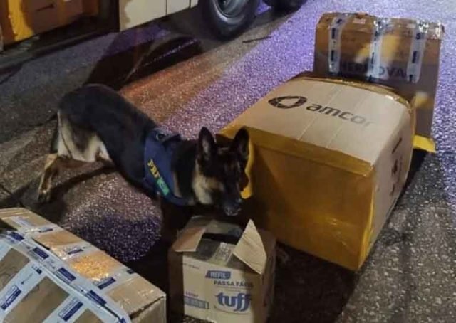 Com o auxílio de cães farejadores da Polícia Rodoviária Federal, os animais indicaram a presença de substâncias ilícitas em uma caixa despachada em um dos ônibus, onde foi encontrado 1 kg de maconha. No outro ônibus, três caixas com mercadorias não nacionalizadas e sem documento fiscal foram descobertas no bagageiro inferior.