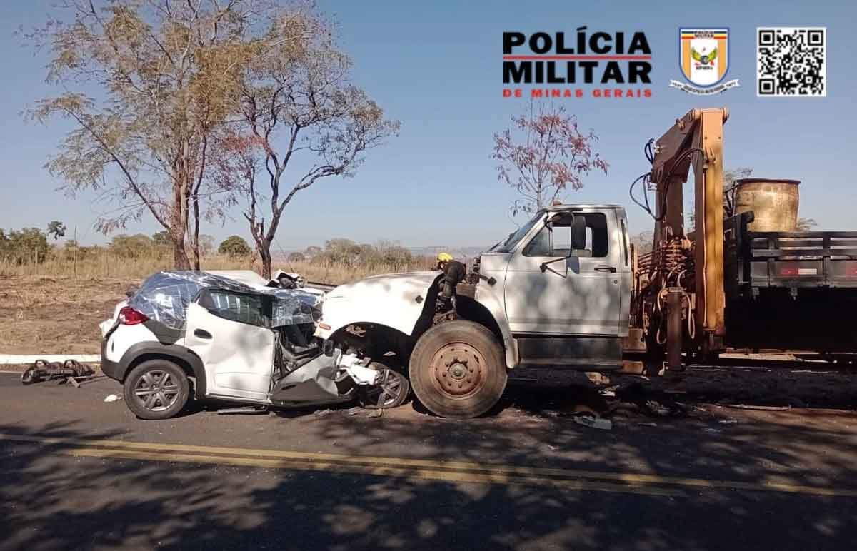 Um trágico acidente ocorrido na MG-413, próximo a Araguari, no Triângulo Mineiro, resultou na morte de três integrantes de uma mesma família na segunda-feira (22/07). O acidente envolveu um Renault Kwid, que perdeu o controle, cruzou para a faixa contrária e colidiu com um caminhão.
