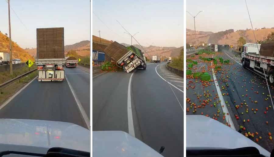 A BR-381 foi bloqueada na manhã desta quinta-feira (29/08) devido ao tombamento de um caminhão carregado com tomates, ocorrido no Km 922, em Camanducaia, Sul de Minas Gerais.