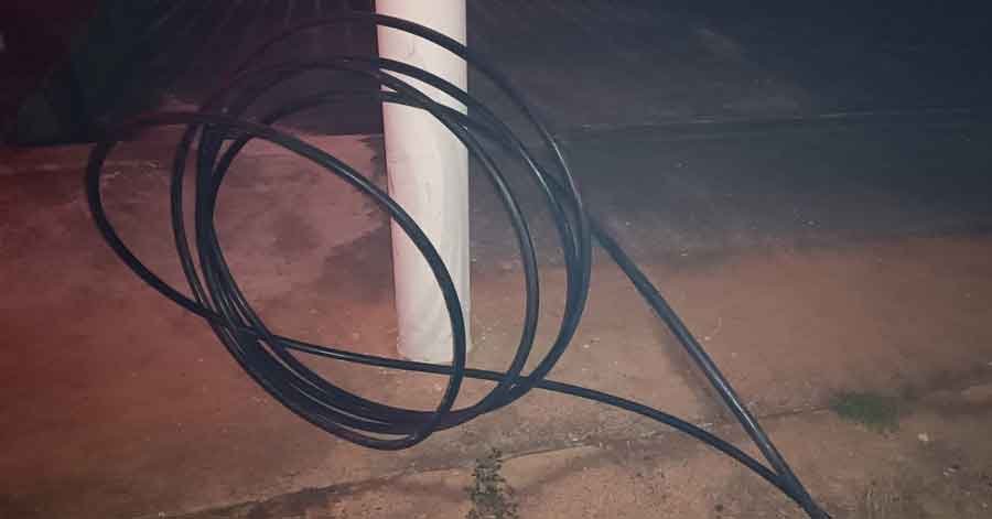 Ao serem abordados, os suspeitos afirmaram estar prestando serviços para a empresa Telemont. Contudo, as informações não corresponderam à realidade, e eles acabaram confessando o furto dos cabos telefônicos. No local, a polícia encontrou fios já cortados e prontos para transporte, além de outros materiais.