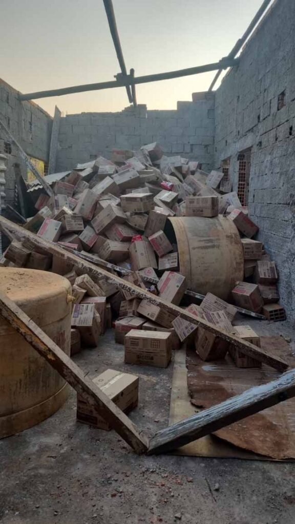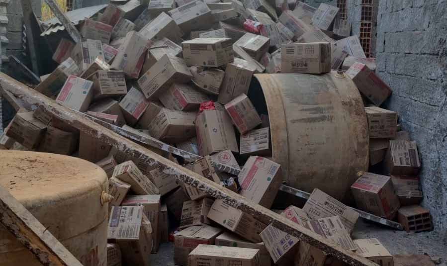 Ao chegar ao local, situado na Rua Bicalho Ferreira, os policiais encontraram diversas caixas de café da marca Três Corações escondidas dentro de uma construção inacabada. Além disso, dezenas de caixas estavam armazenadas do lado de fora da obra.
